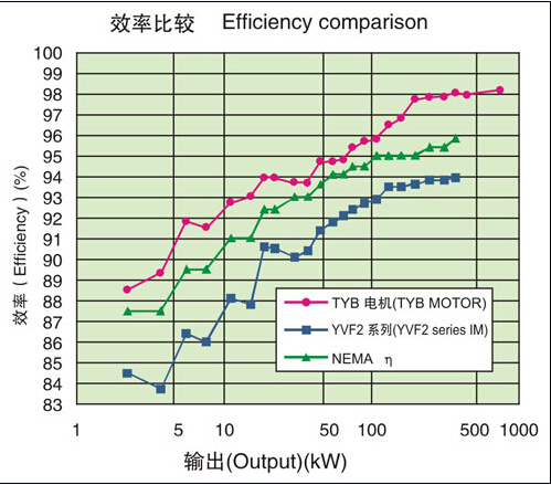 效率比高效電機(jī)NEMA標(biāo)準(zhǔn)值約提高3%左右,比本公司YVF2系列變頻器專用IM約提高5%左右。