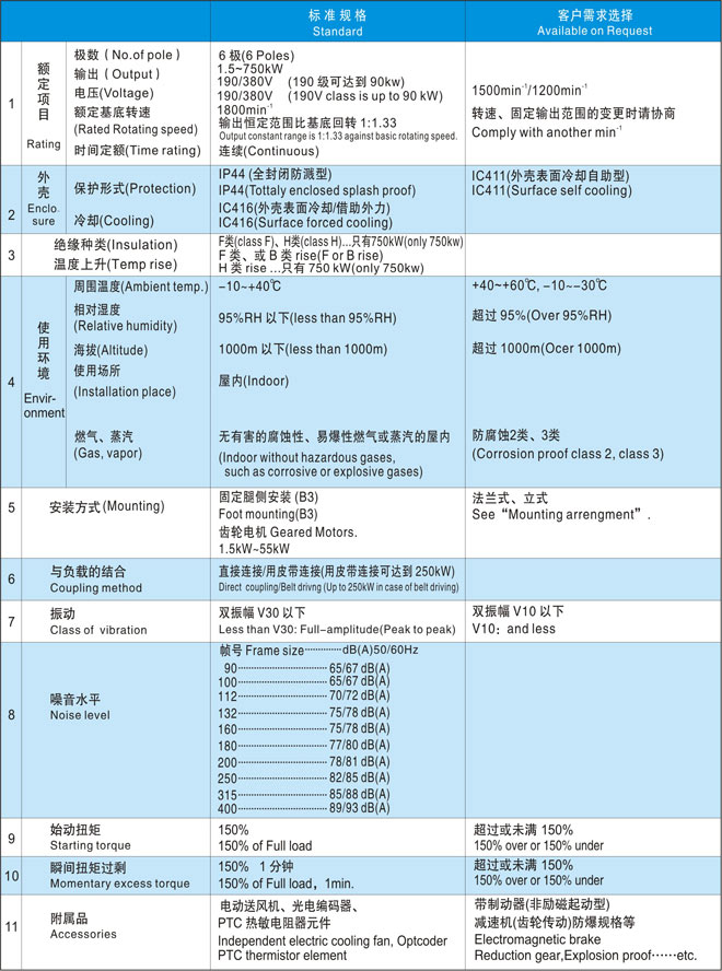 5)在高于規(guī)定溫度(40℃)的環(huán)境下使用時(shí),電機(jī)需要降額使用,該情況下請(qǐng)與弊公司商量。
